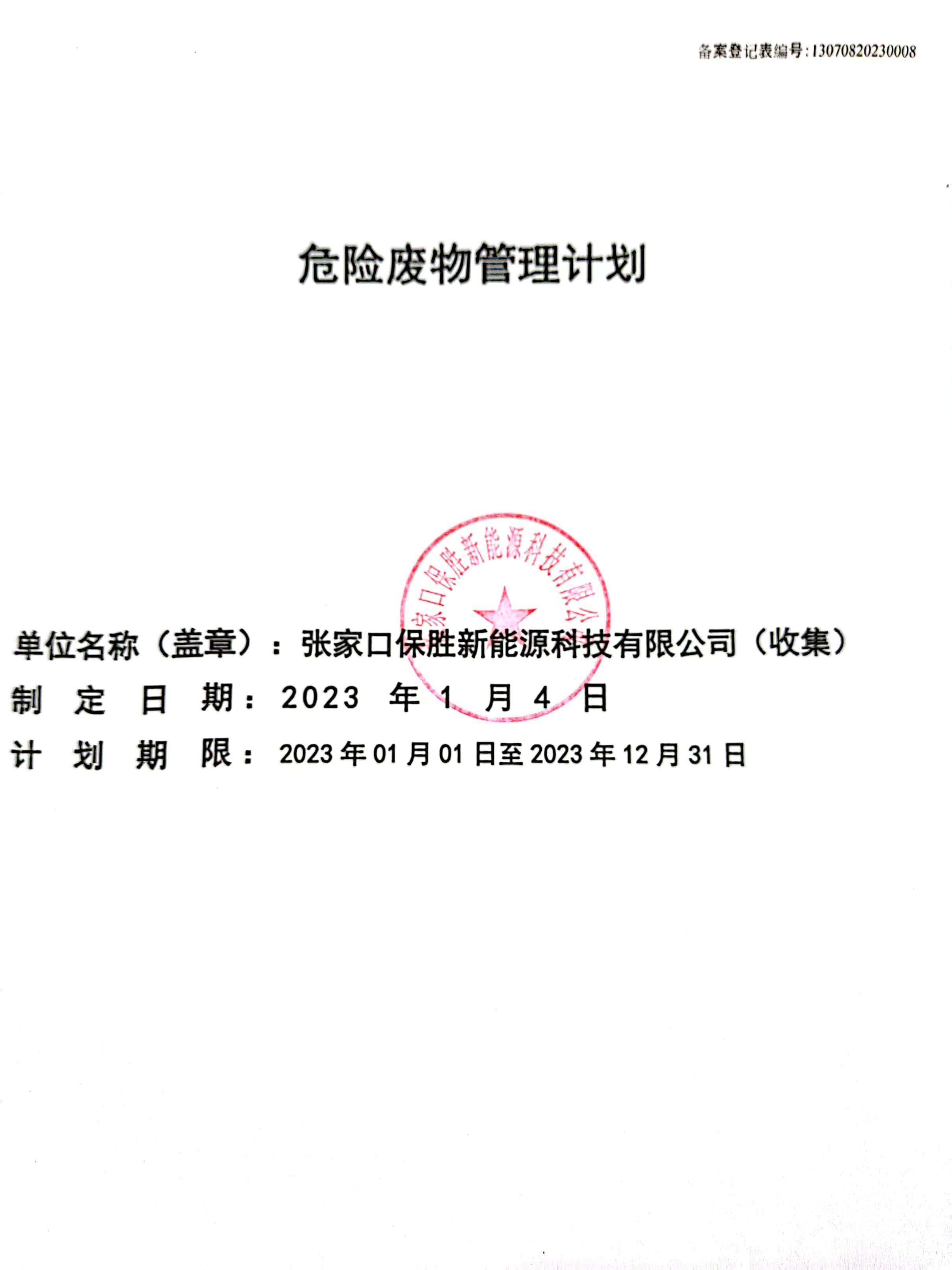 2023年危險廢物管理計劃公示